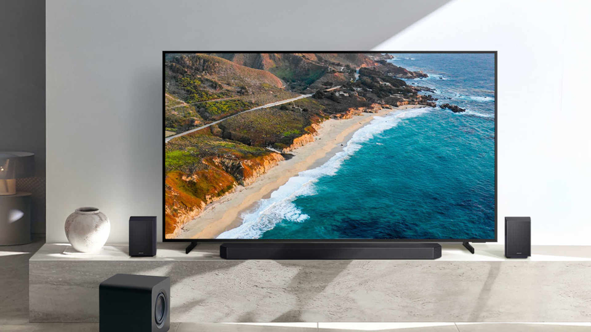 Door zijn tv's en soundbars op een slimme manier te laten samenwerken weet Samsung het geluid naar een hoger niveau te tillen. Met Q-Symphony worden de speakers in de tv gebruikt om het geluid van de soundbar aan te vullen. Dit geeft een extra ruimtelijk geluid, vooral bij tv's met speakers achter de bovenrand of -hoeken van het scherm. Ook geeft Q-Symphony een natuurlijker effect doordat stemmen uit het beeld zelf lijken te komen, en niet uit een speaker onder het scherm. Door het slim scheiden van achtergrondgeluiden, -muziek en spraak worden programma's, series en films ook nog eens beter verstaanbaar. Het idee achter Q-Symphony is zo aantrekkelijk dat andere fabrikanten het ook toepassen. LG heeft een vergelijkbaar systeem dat WOW Orchestra heet, Sony noemt het Acoustic Center Sync en Hisense bedacht Hi-Concerto. Soundbars en speakers zijn in de basis te gebruiken met televisies van ieder merk, maar de integratie met de tv-speakers werkt alleen als de tv en het geluidssysteem van dezelfde fabrikant zijn en beide geschikt zijn om op deze manier samen te werken. Check bij aankoop van bijvoorbeeld een Samsung televisie en soundbar dus of beide geschikt zijn voor Q-Symphony.