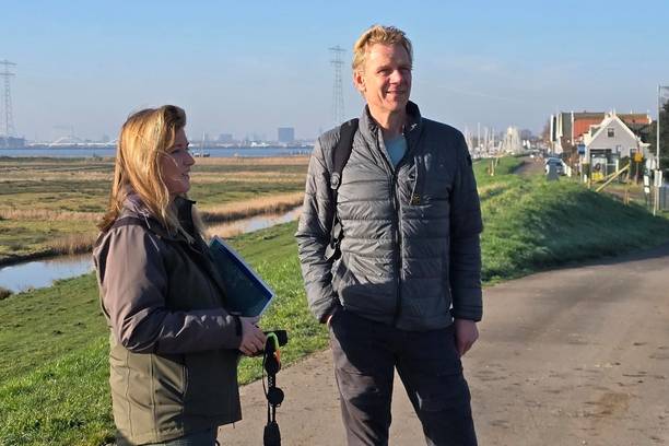 Magazine, Natuur. Met de skyline van Amsterdam op de achtergrond zien we de eerste weidevogels Waterland binnenvallen. Tegelijkertijd zitten er nog wintergasten, zoals smienten, zaagbekken en grote groepen ganzen.